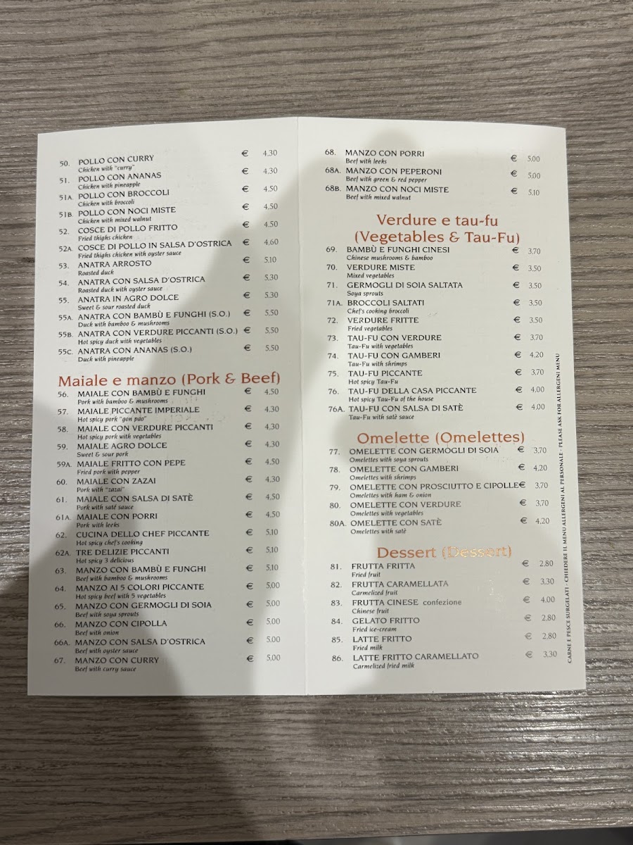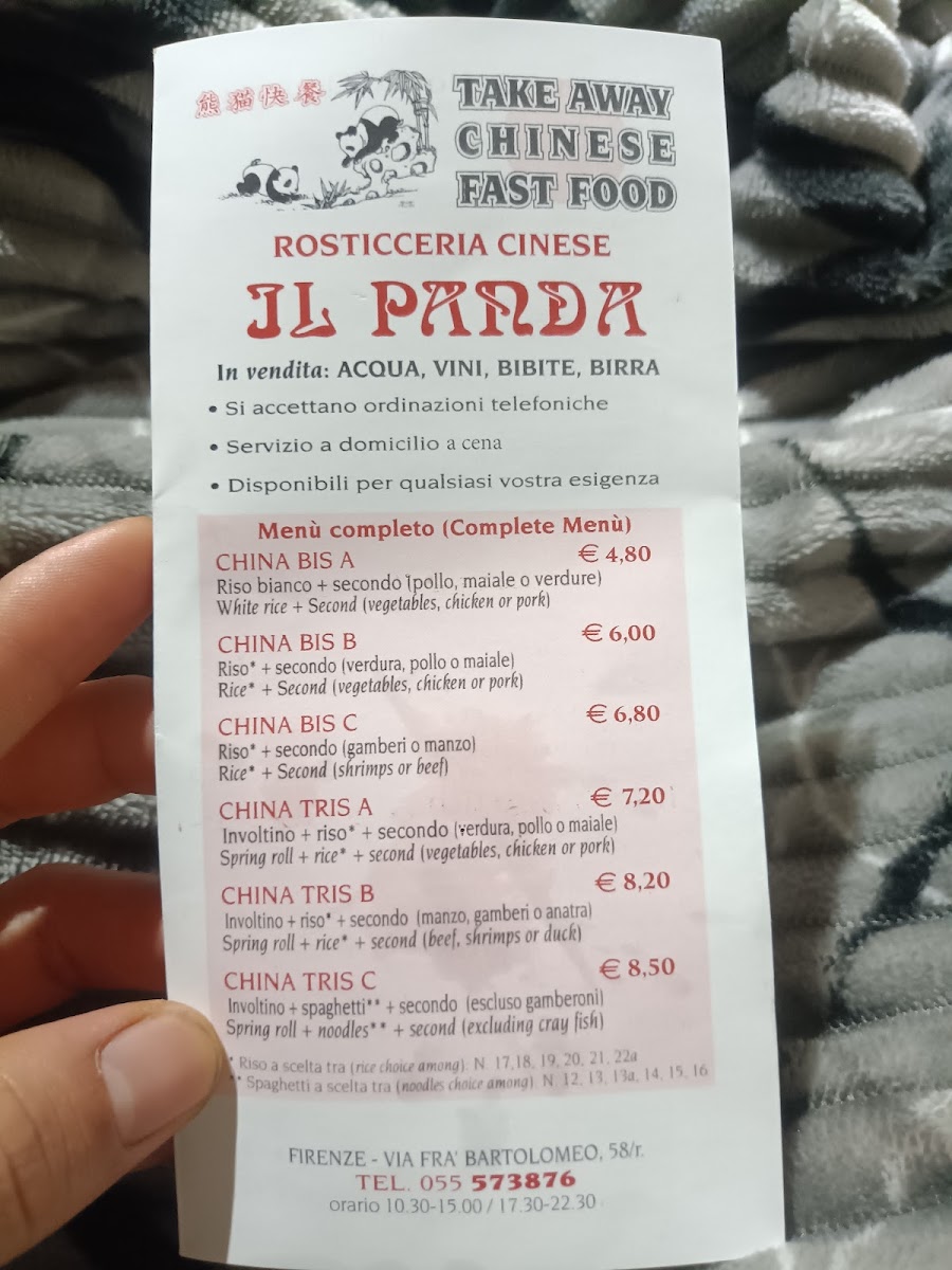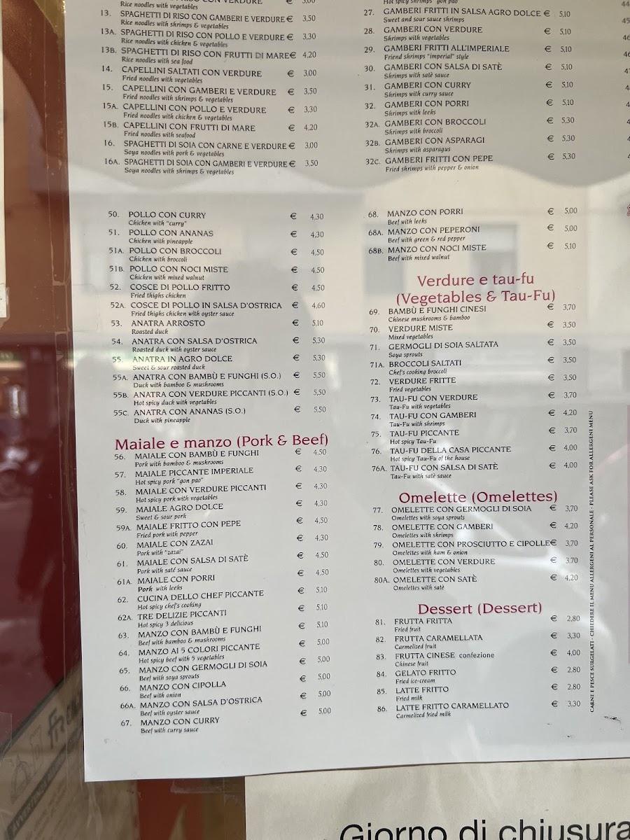 Rosticceria Cinese Il Panda Di Huang Shuhai in Florence offers a variety of classic Chinese dishes that stand out for their authenticity and flavor. The menu features a selection of well-loved items, including the delicate Ravioli Al Vapore, filled with savory ingredients and steamed to perfection. For a satisfying and hearty meal, the Spaghetti Saltati delivers a delicious combination of stir-fried noodles with fresh vegetables and savory sauces. If you're in the mood for a drink, the Birra Cinese is a refreshing option that pairs wonderfully with the meals. The appetizers also shine, with the crispy and flavorful Involtini Primavera providing a crunchy contrast to the other dishes. The Mix Di Antipasti is a great way to sample a variety of flavors, offering an assortment of traditional bites. Lastly, the Pollo In Agrodolce, a sweet and sour chicken dish, is a must-try for anyone who loves a balance of tangy and sweet. Each dish is thoughtfully prepared, making it clear why Rosticceria Cinese Il Panda is a go-to spot for satisfying Chinese comfort food in the heart of Florence.